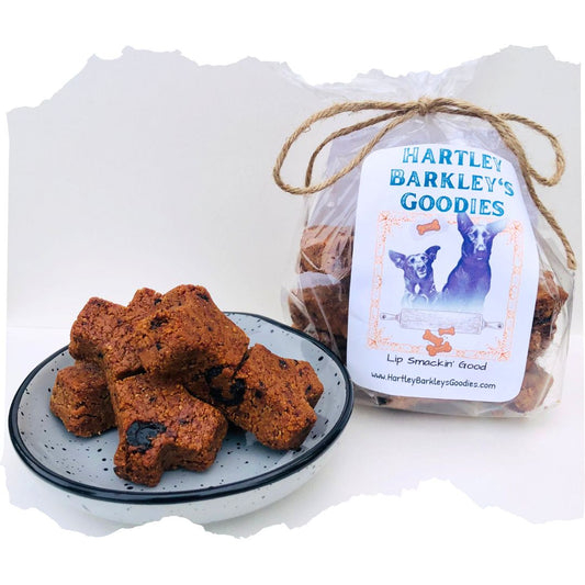 We use fresh ingredients such as almond flour, creamy peanut butter, blueberries, and sweet potatoes. Ingredients that are Lip Smackin' Good! Enhance your pup's health with our organic treats--buy now for a happier, healther dog!